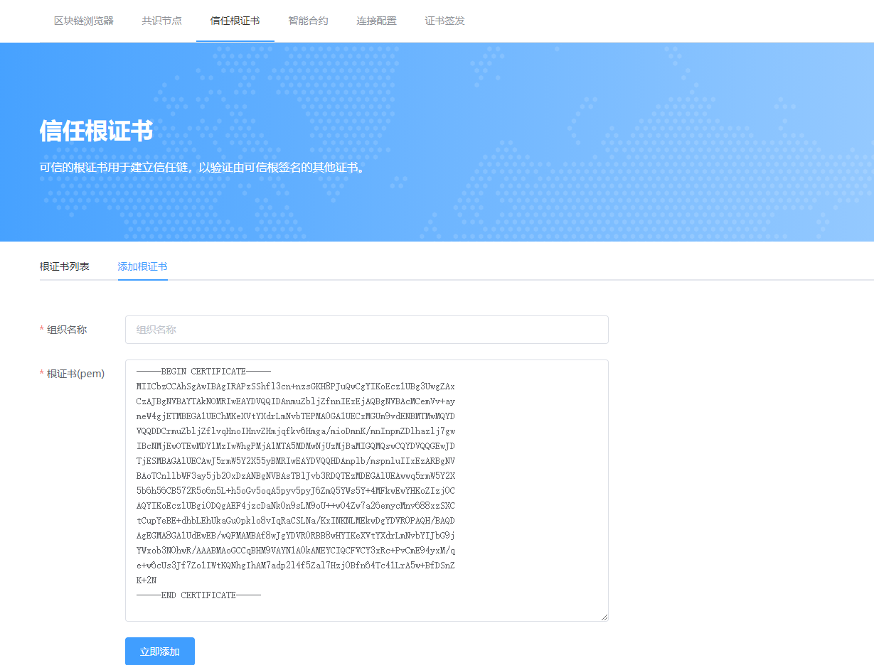 通过管理平台信任根证书